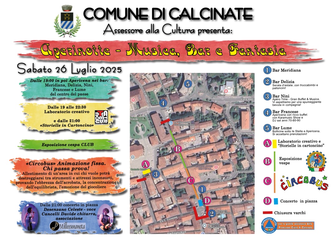 Sabato 26 luglio 2025 – “Aperinotte: Musica, Bar e Fantasia” a Calcinate