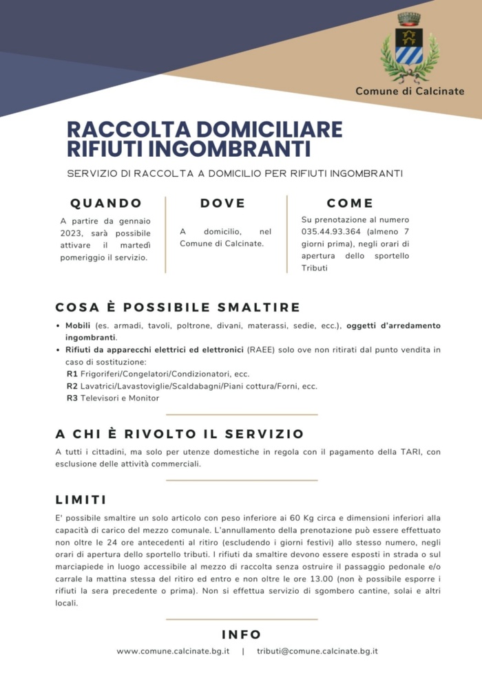 Raccolta domiciliare Rifiuti Ingombranti