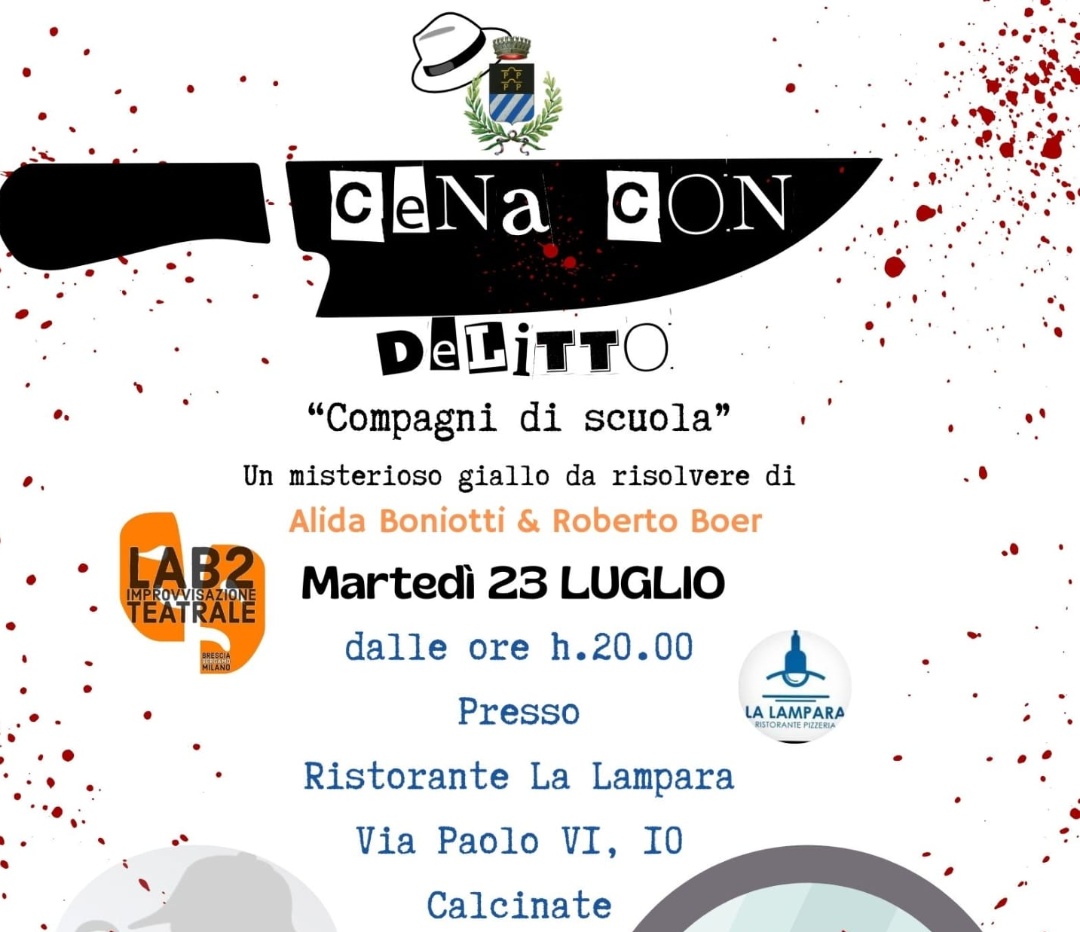 Un po’ di svago durante l’estate! Vi aspettiamo presso il ristorante La Lampara per goderci una serata speciale: LAB2 porta a Calcinate una CENA CON DELITTO da non perdere!