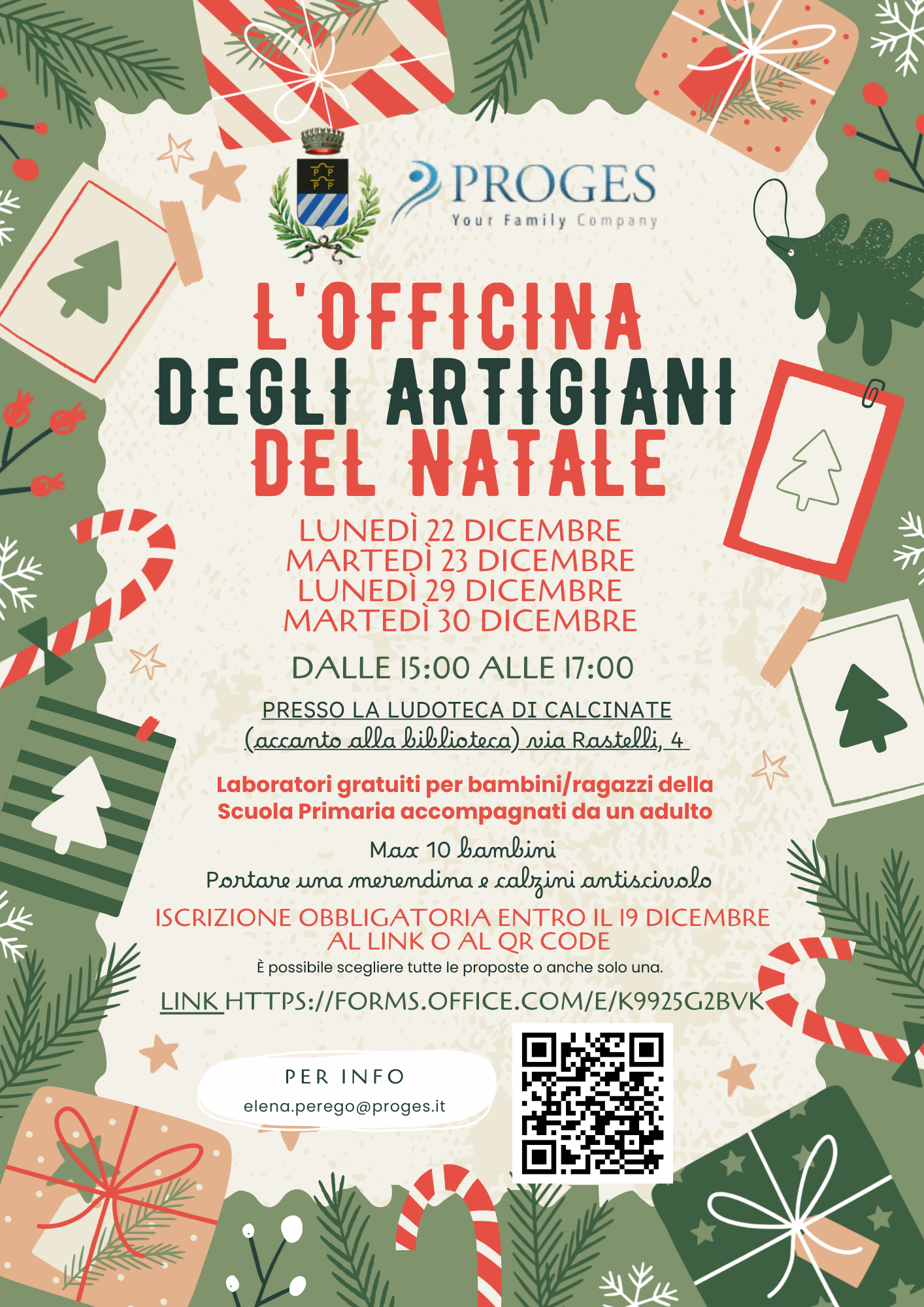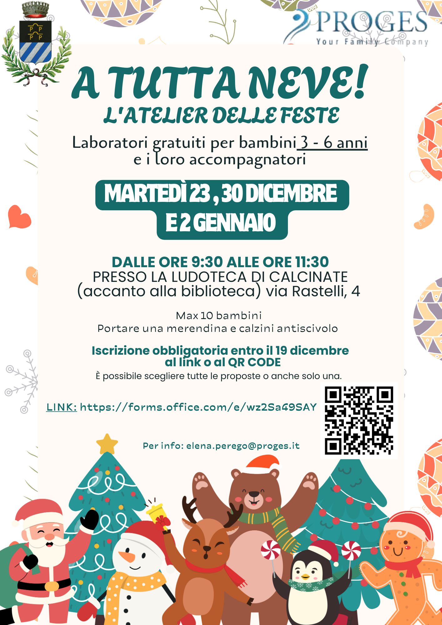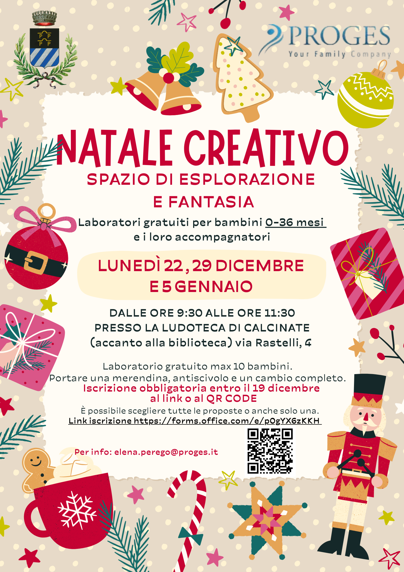 Il Comune di Calcinate propone una serie di laboratori natalizi gratuiti rivolti ai bambini da 0 a 10 anni e ai loro accompagnatori, con l’obiettivo di offrire spazi di creatività, esplorazione e socializzazione durante le festività di natale.