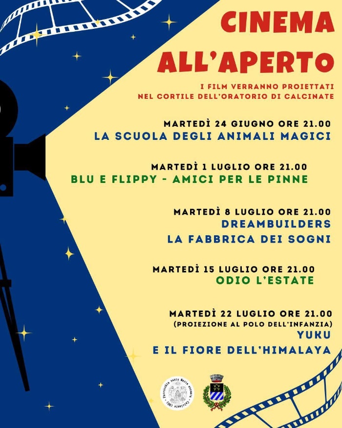 Descrizione Cinema all’Aperto nel cortile dell’Oratorio di Calcinate ore 21,00 PROGRAMMA DELLE PROIEZIONI: Martedì 24 giugno: La scuola degli animali magici