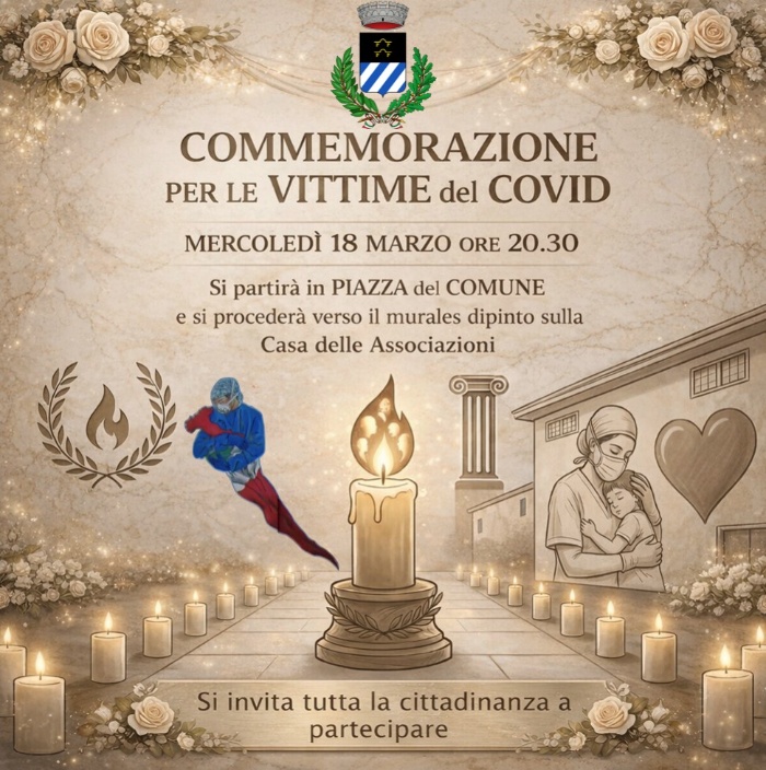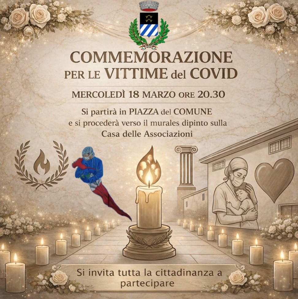 L’Amministrazione comunale invita la cittadinanza a partecipare alla Commemorazione dedicata alle vittime del Covid, un momento di raccoglimento e memoria per ricordare tutte le persone che la pandemia ha portato via e per rendere omaggio al grande impegno dimostrato dalla comunità durante quel difficile periodo.
