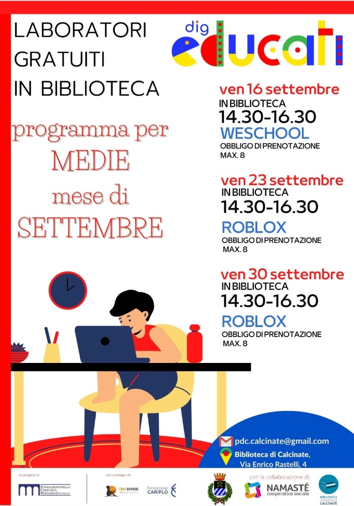 Laboratori digitali, ricerche web, grafica, aiuto per i compiti digitali e tanto altro per bambini e ragazzi dai 6 ai 13 anni Riparte dal mese di settembre