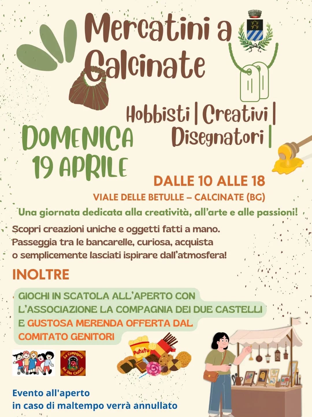 Il Comune invita tutta la cittadinanza a partecipare ai Mercatini a Calcinate, una giornata dedicata alla creatività, all’arte e alle passioni.